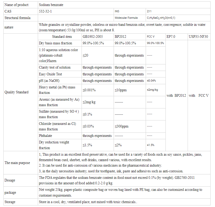 China wholesale food preservative sodium benzoate powder food grade factory price 25kg