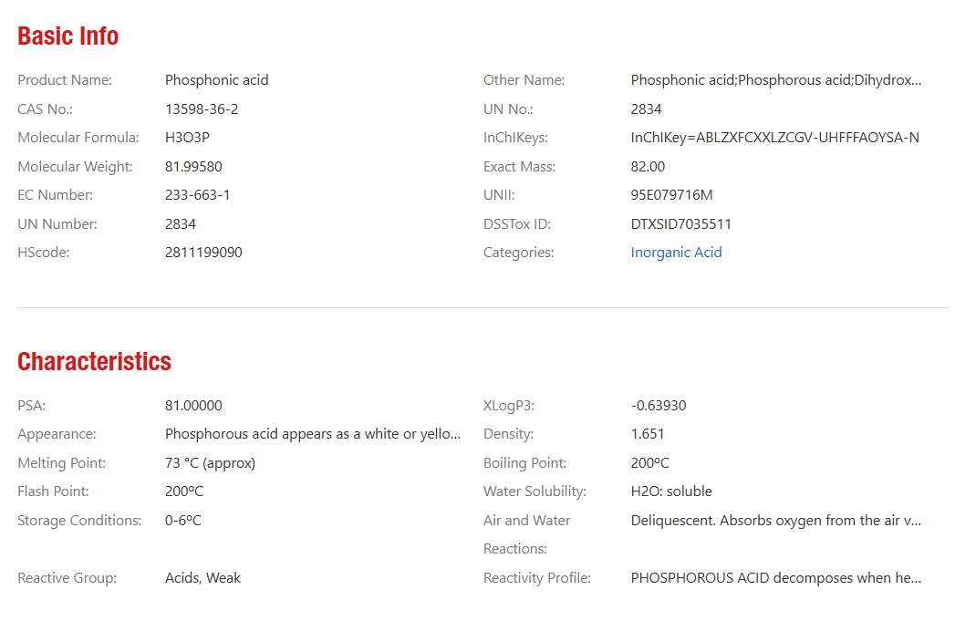 ItemsSpecificationsCAS13598-36-2chemical formulaH3O3P